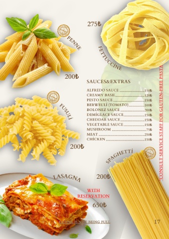 VEGETABLE SAUCE ....................150₺ *CONSULT SERVICE STAFF FOR GLUTEN-FREE PASTA