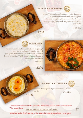 * Kahvaltı ürünlerimiz hafta içi 13:00, Hafta sonu 15:00'a kadar verilmektedir.